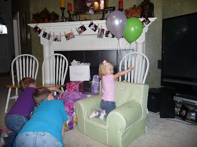 Immediately, she crawled right into her chair that Andrea got her. She loves it! Not a day since has gone by that she hasn't sat, jumped,crawled in this chair. :)
